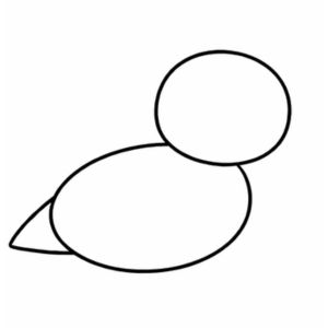 Draw a big oval for the body, a circle for the head, and a triangle for the tail.